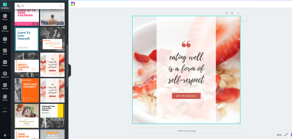 Let’s say you are a “fitness”-“healthy-life” influencer or something similar…you take this post, edit some text, maybe add another free image and you are ready to go. Download it in the format and size you wish and start posting, printing and boosting it.